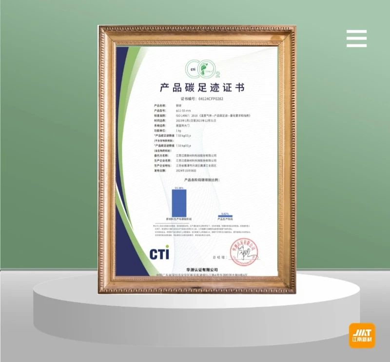 2024年江南新材率先以銅球系列產(chǎn)品為代表,申請獲得產(chǎn)品碳足跡證書。公司努力踐行保障銅球產(chǎn)品在整個制造生命周期的低碳環(huán)保要求,從原材料采購、生產(chǎn)制造,到產(chǎn)品運輸、使用以及最終廢棄處理,每一個環(huán)節(jié)上努力精進,以達到減碳減排的目標。